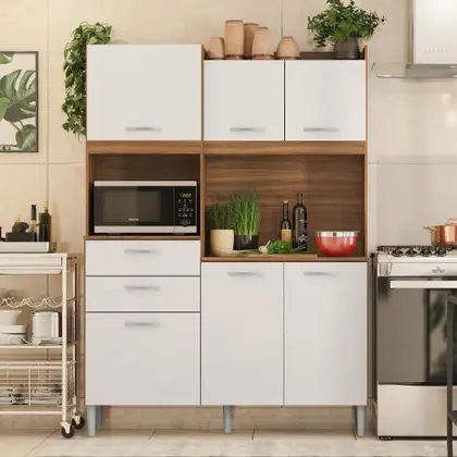 A escolha ideal para quem busca praticidade e beleza em um só móvel. Com 6 portas, 2 gavetas e pés inclusos, ele oferece excelente espaço interno para armazenar utensílios, alimentos e acessórios, mantendo sua cozinha sempre organizada. Com acabamento fosco na charmosa combinação Amêndola/Branco, o design moderno do Armário Harmonia se adapta facilmente a diferentes estilos de ambiente. Seu formato compacto é ideal para quem precisa otimizar o espaço sem abrir mão da funcionalidade.