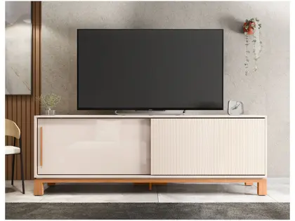 Transforme sua sala de estar com a Bancada Mondrian para TVs de até 65 polegadas. Com design robusto e acabamento em cores naturais, combina elegância e requinte. Possui 1,8 m de largura e 0,665 m de altura, com duas portas, nichos e amplo espaço interno para objetos de decoração, caixas de som e eletroeletrônicos. Ideal para ambientes maiores, garante sofisticação e funcionalidade.