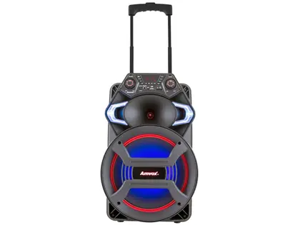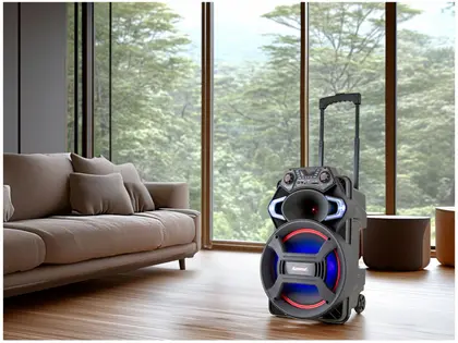 Possui bateria recarregável, alça e rodízios para transporte, display em LED e função de pareamento entre duas caixas, ampliando ainda mais a potência sonora. Uma solução completa para quem busca impacto, mobilidade e desempenho profissional.