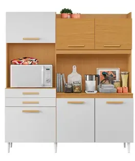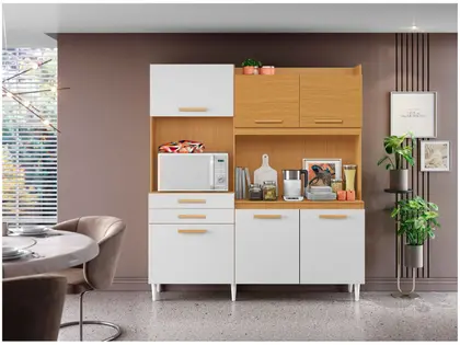Transforme sua cozinha com a Cozinha Modulada Selena, um modelo moderno que combina elegância e praticidade. Produzida em MDP com pintura UV e acabamento em verniz texturizado, oferece alta durabilidade e fácil limpeza. Com 6 portas, 2 gavetas com corrediças telescópicas, e 1 nicho para micro-ondas, o móvel é ideal para otimizar o espaço e manter tudo organizado.